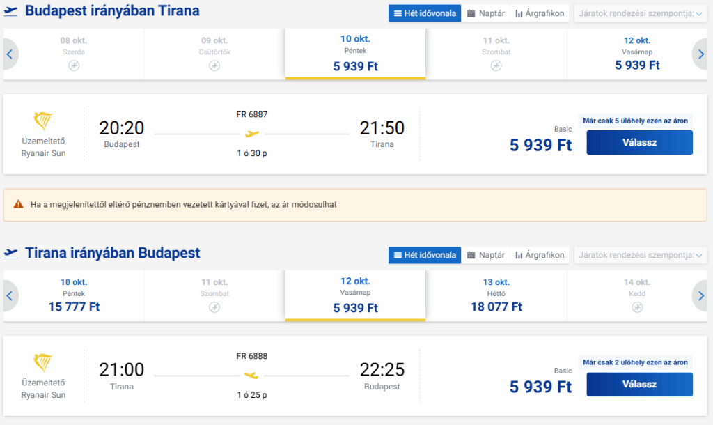 Figyelem! A közzétett ajánlataink a megosztás pillanatában érvényesek, előfordulhat, hogy a közzététel után néhány perccel elfogynak az olcsó repülőjegyek/szállások. A Filléres Utak weboldal csak a legjobb utazási ajánlatokat gyűjti össze és tippeket ad, az ajánlatok lefoglalásában nem tud segítséget nyújtani, valamint azokkal kapcsolatosan felelősséget vállalni.