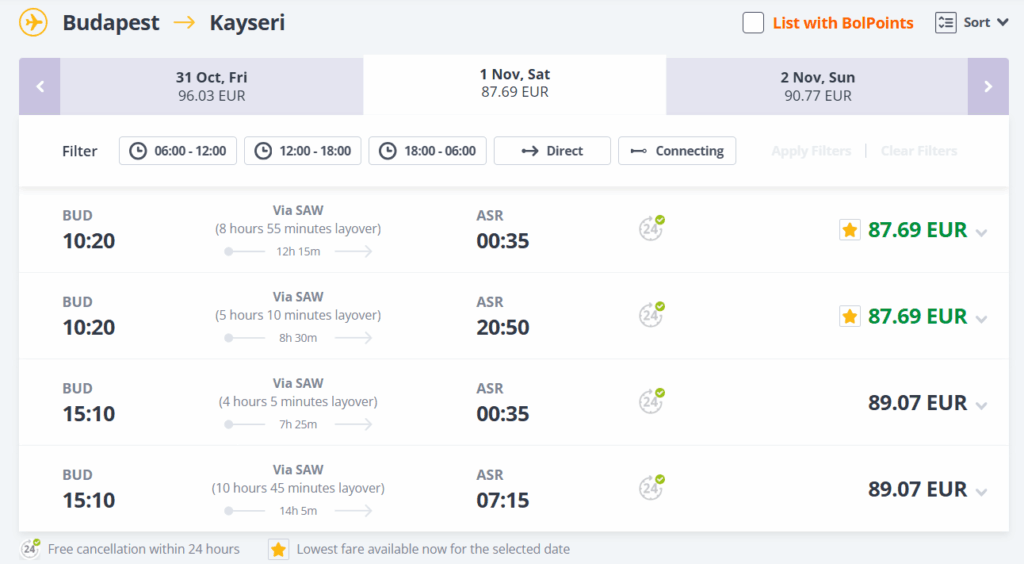 Jó áron foglalhattok repülőjegyet a Pegasusnál Budapestről Isztambuli átszállással Kayseribe, ahonnan könnyen megközelíthető Kappadókia.
