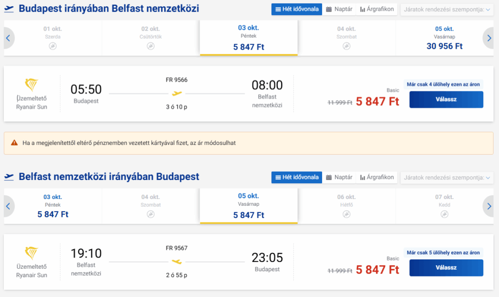 Repülőjegy: Ryanair, oda-vissza 11.694 Ft Foglalás ITT