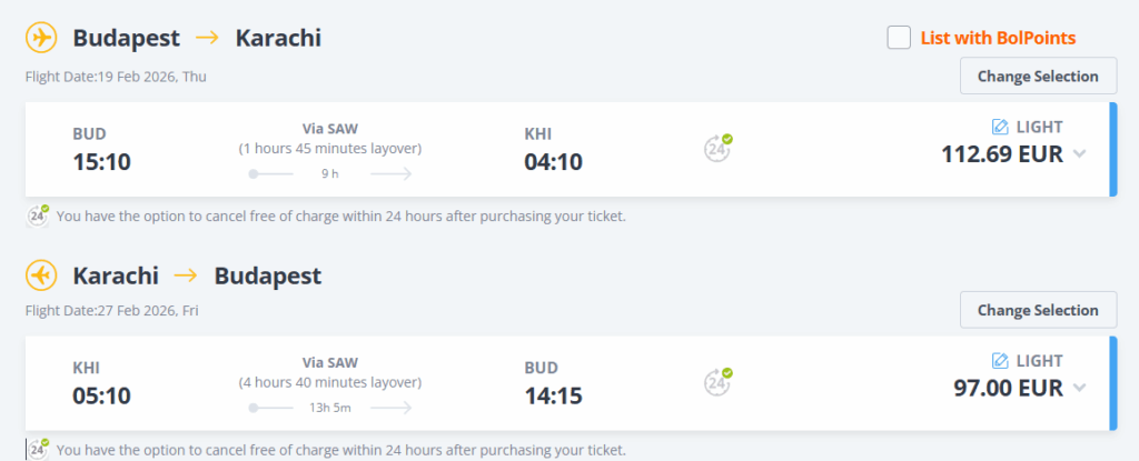 Repülőjegy: Pegasus Airlines, Budapest-Karachi oda-vissza 209,69 Euró, kb. 81.650 Ft. Foglalás ITT
