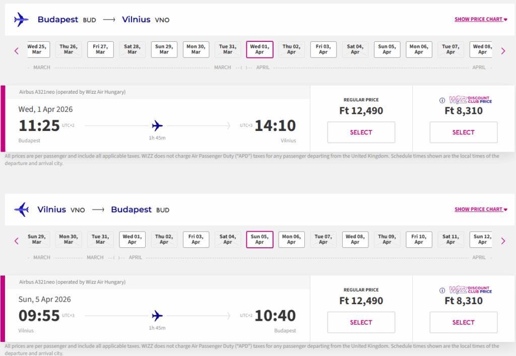 Jó áron foglalhattok repülőjegyet jövő tavasszal a Wizz Air új Budapest-Vilnius járatára.