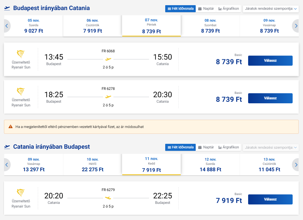Jó áron foglalhattok repülőjegyet Cataniába.