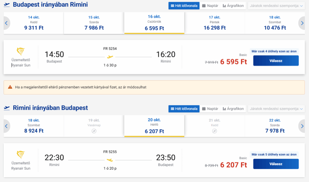 Repülőjegy: Budapest-Rimini oda-vissza 12.802 Ft Foglalás ITT
