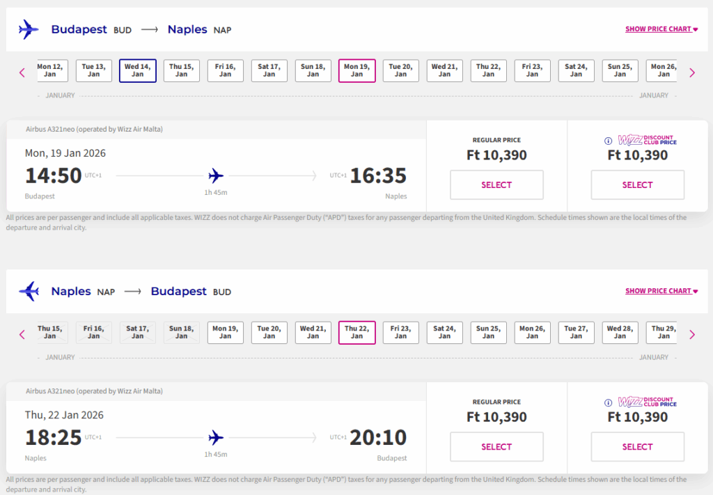 Repülőjegy: Wizz Air, Budapest-Nápoly oda-vissza 20.780 Ft Foglalás ITT