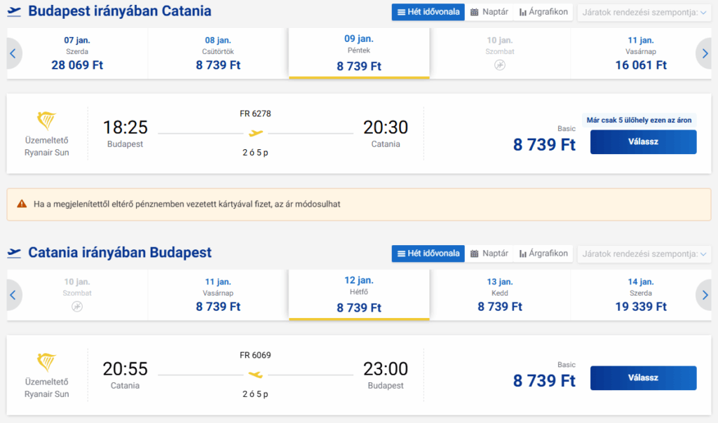 Jó áron foglalhattok repülőjegyet Cataniába.