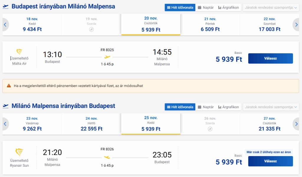 Figyelem! A közzétett ajánlataink a megosztás pillanatában érvényesek, előfordulhat, hogy a közzététel után néhány perccel elfogynak az olcsó repülőjegyek/szállások. A Filléres Utak weboldal csak a legjobb utazási ajánlatokat gyűjti össze és tippeket ad, az ajánlatok lefoglalásában nem tud segítséget nyújtani, valamint azokkal kapcsolatosan felelősséget vállalni.