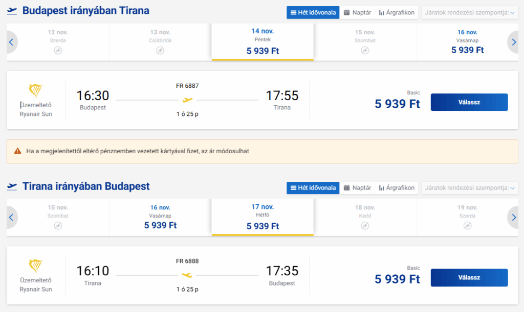 Figyelem! A közzétett ajánlataink a megosztás pillanatában érvényesek, előfordulhat, hogy a közzététel után néhány perccel elfogynak az olcsó repülőjegyek/szállások. A Filléres Utak weboldal csak a legjobb utazási ajánlatokat gyűjti össze és tippeket ad, az ajánlatok lefoglalásában nem tud segítséget nyújtani, valamint azokkal kapcsolatosan felelősséget vállalni.