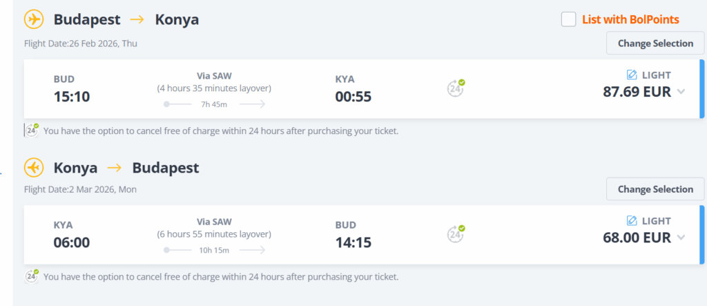 Jó áron foglalhattok repülőjegyet a Pegasusnál Budapestről a törökországi Konyába.