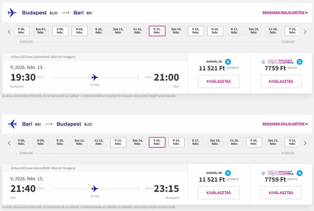 Jó áron foglalhattok repülőjegyet Budapestről Bariba.