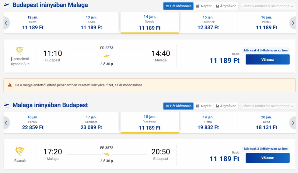 Repülőjegy: Ryanair, oda-vissza 22.378 Ft Foglalás ITT