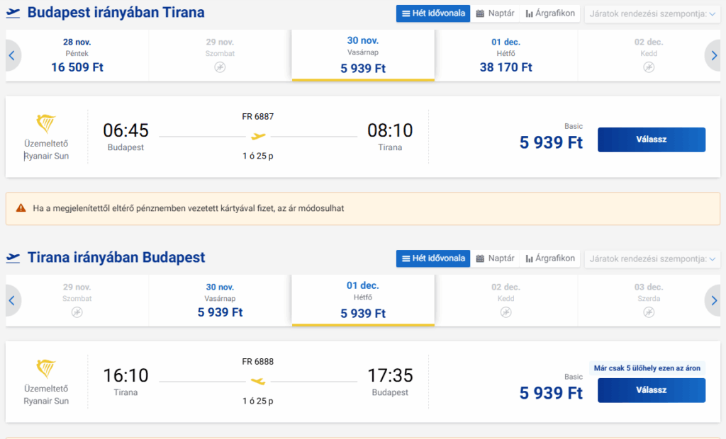 Figyelem! A közzétett ajánlataink a megosztás pillanatában érvényesek, előfordulhat, hogy a közzététel után néhány perccel elfogynak az olcsó repülőjegyek/szállások. A Filléres Utak weboldal csak a legjobb utazási ajánlatokat gyűjti össze és tippeket ad, az ajánlatok lefoglalásában nem tud segítséget nyújtani, valamint azokkal kapcsolatosan felelősséget vállalni.