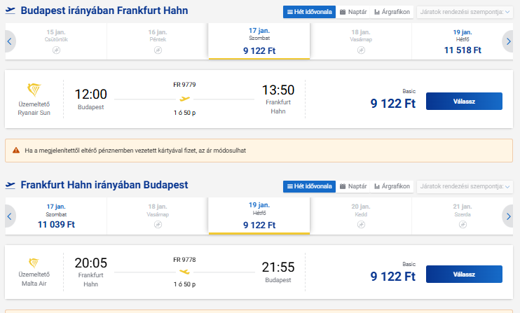 Jó áron foglalhattok repülőjegyet Budapestről Frankfurt-Hahn repülőtérre.