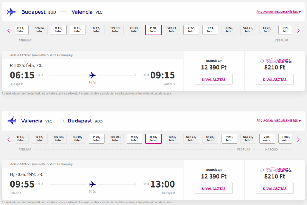 Repülőjegy: Wizz Air, Budapest-Valencia oda-vissza 16.420 Ft(Wizz tagságival, anélkül 24.780 Ft) Foglalás ITT