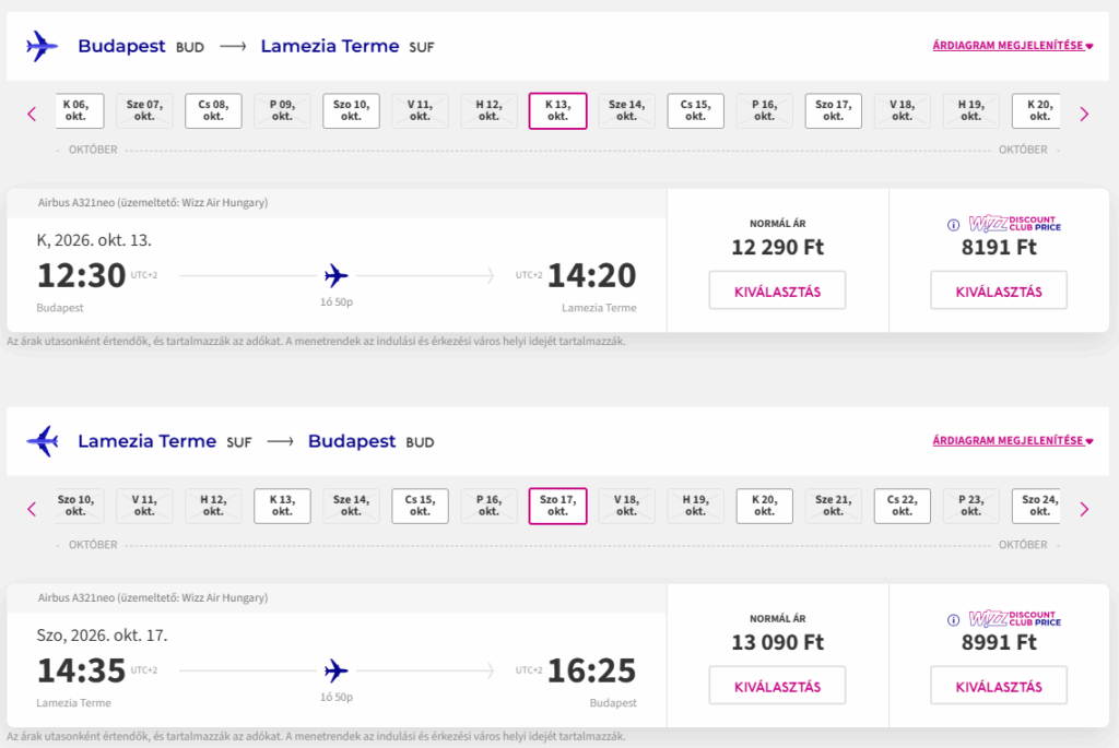 Jó áron foglalhattok repülőjegyet jövő ősszel a Wizz Air új Budapest-Lamezia járatára.