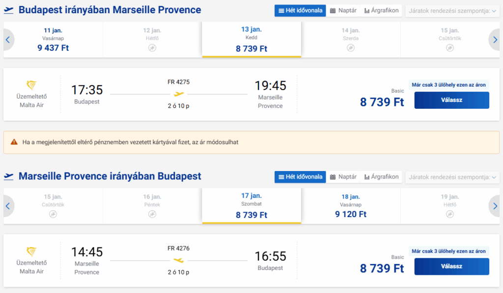 Figyelem! A közzétett ajánlataink a megosztás pillanatában érvényesek, előfordulhat, hogy a közzététel után néhány perccel elfogynak az olcsó repülőjegyek/szállások. A Filléres Utak weboldal csak a legjobb utazási ajánlatokat gyűjti össze és tippeket ad, az ajánlatok lefoglalásában nem tud segítséget nyújtani, valamint azokkal kapcsolatosan felelősséget vállalni.