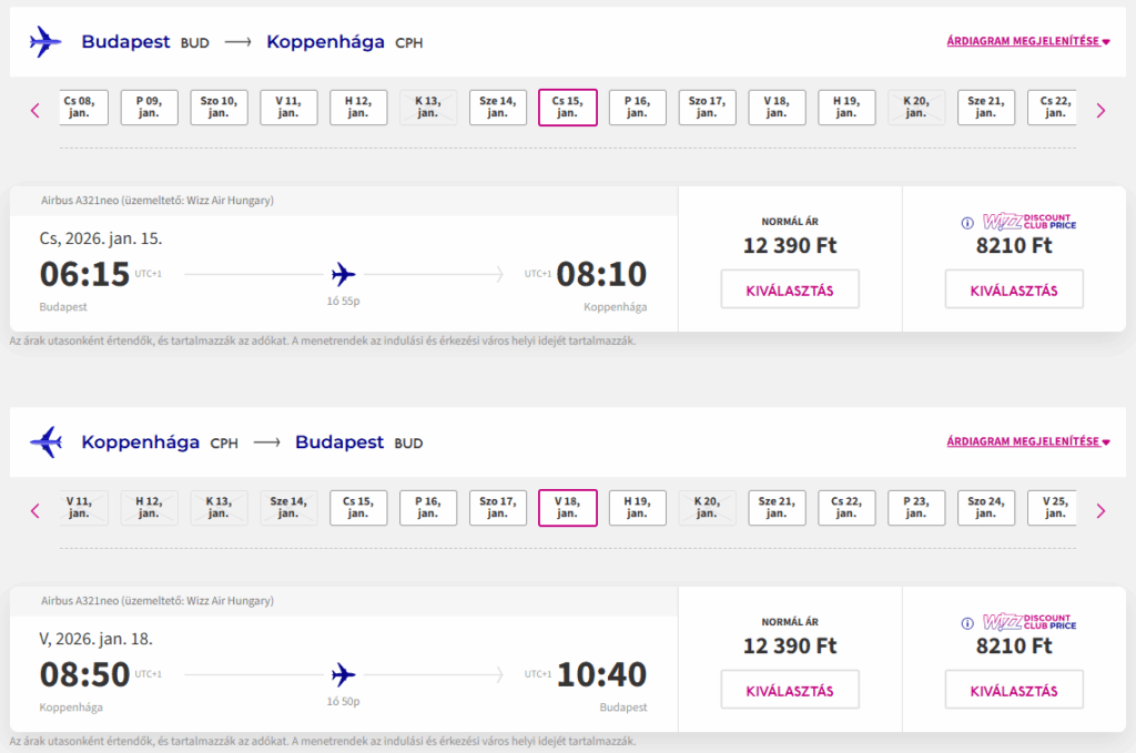 Repülőjegy: oda-vissza 16.420 Ft(Wizz tagságival, anélkül 24.780 Ft) Foglalás ITT