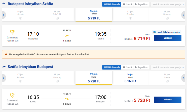 Repülőjegy: Ryanair, oda-vissza 11.439 Ft Foglalás ITT