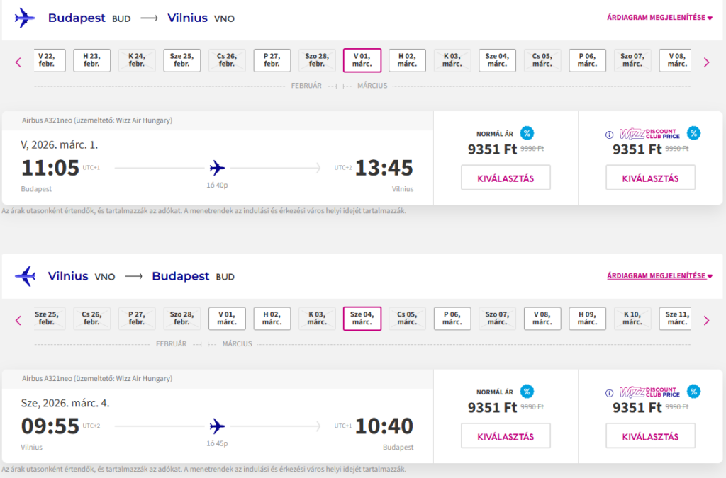 Repülőjegy: Wizz Air, oda-vissza 18.702 Ft Foglalás ITT