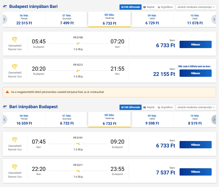 Jó áron foglalhattok repülőjegyet egy egynapos utazáshoz Budapestről Bariba.