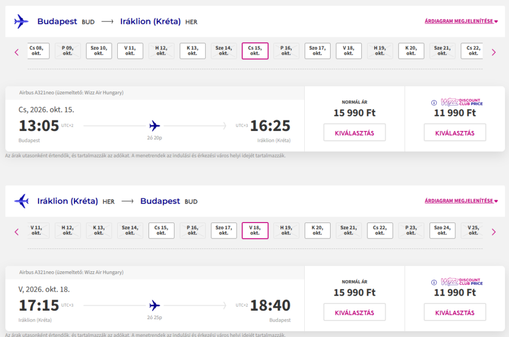 Repülőjegy: Wizz Air, Budapest-Kréta oda-vissza 23.980 Ft(Wizz tagságival, anélkül 31.980 Ft) Foglalás ITT