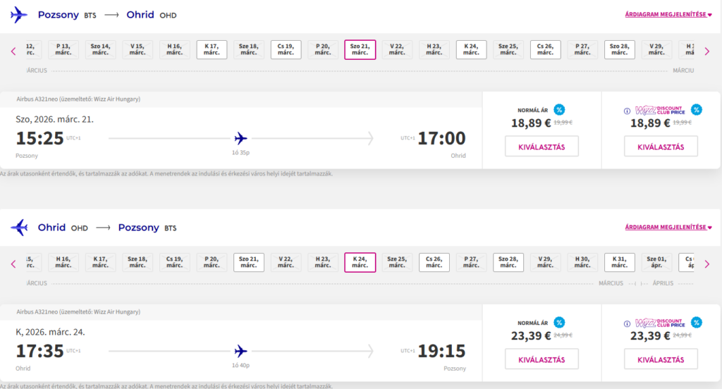 Repülőjegy: Wizz Air, Pozsony-Ohrid oda-vissza 42,28 Euró, kb. 16.275 Ft Foglalás ITT