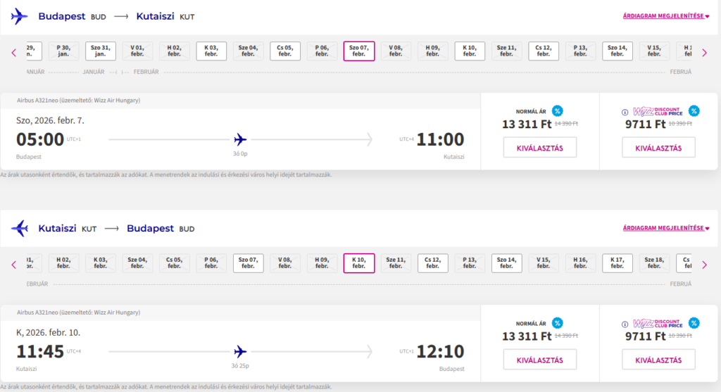 Repülőjegy: Wizz Air, Budapest-Kutaisi oda-vissza 19.422 Ft(Wizz tagságival, anélkül 26.622 Ft) Foglalás ITT
