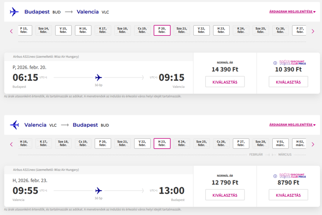 Repülőjegy: Wizz Air, Budapest-Valencia oda-vissza 19.180 Ft(Wizz tagságival, anélkül 27.180 Ft) Foglalás ITT