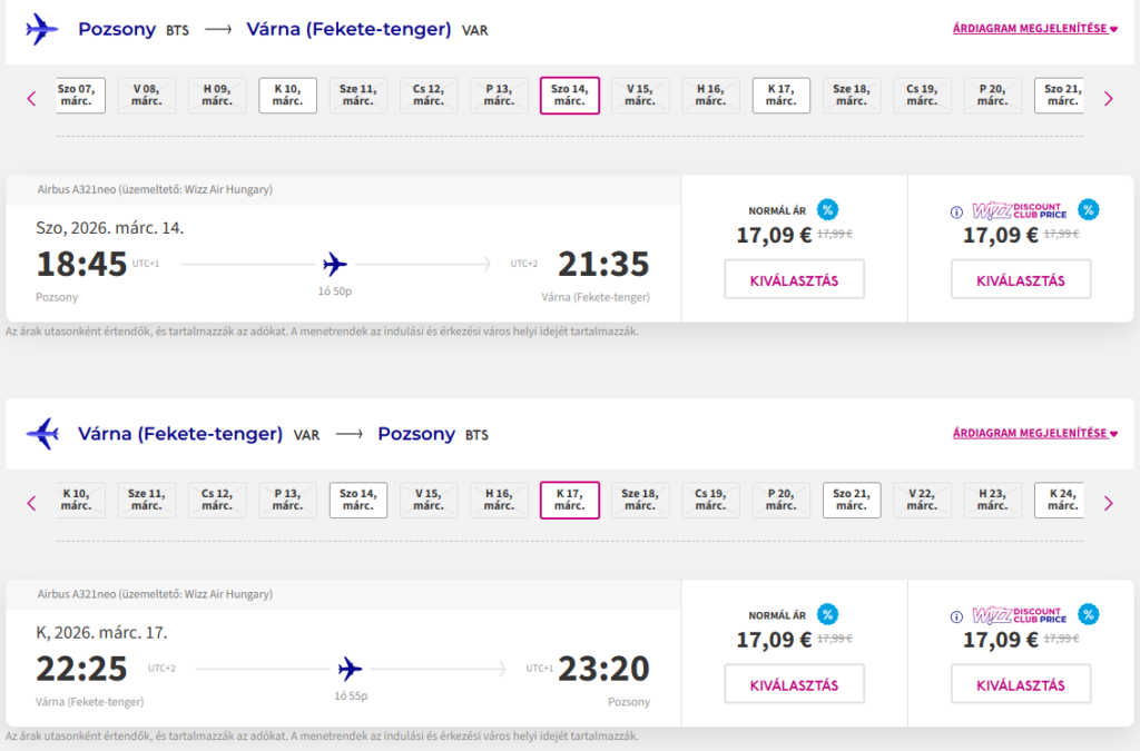 Repülőjegy: Wizz Air, oda-vissza 34,18 Euró, kb. 13.221 Ft Foglalás ITT