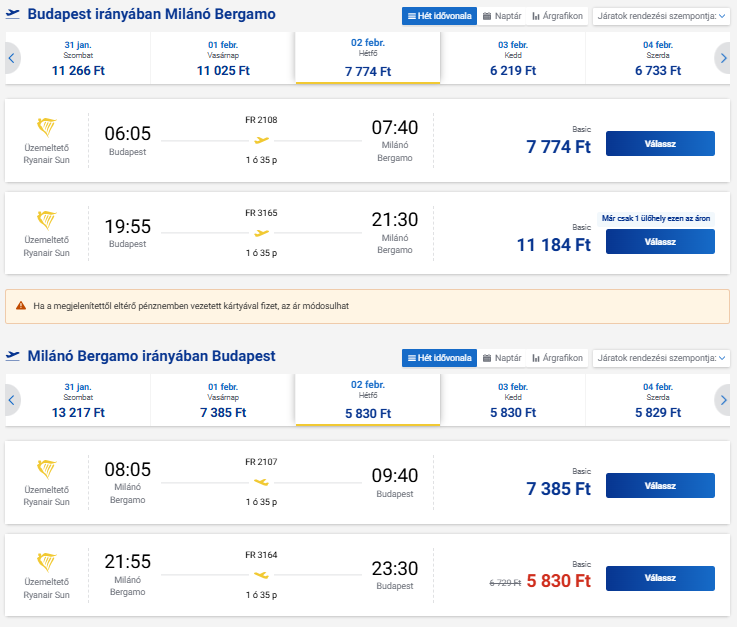 Ugorjatok ki egy napra Milánóba vagy Bergamóba! A repülő kora reggel megy, és késő este jön vissza Budapestre.