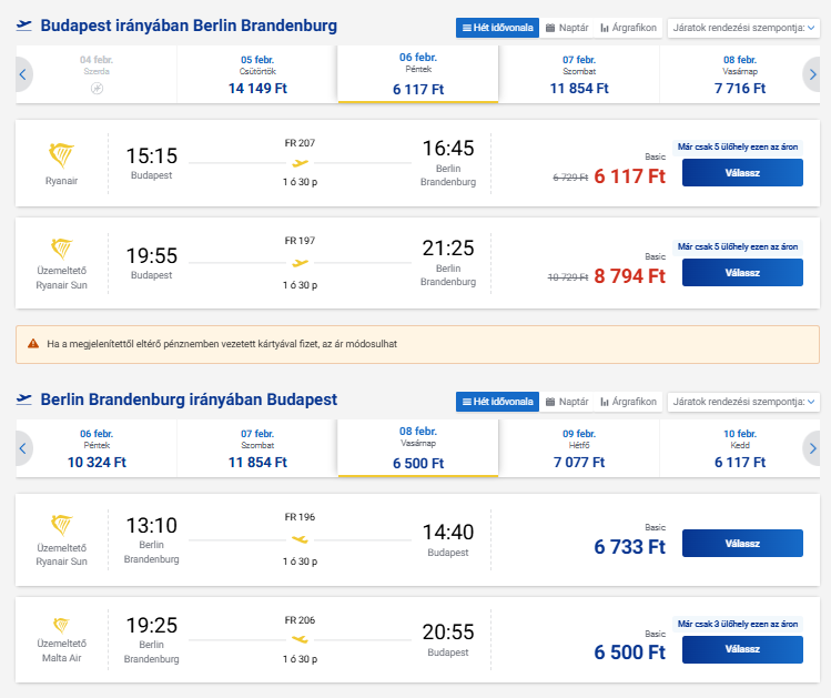 Repülőjegy: Budapest-Berlin, Ryanair, oda-vissza 12.617 Ft Foglalás ITT