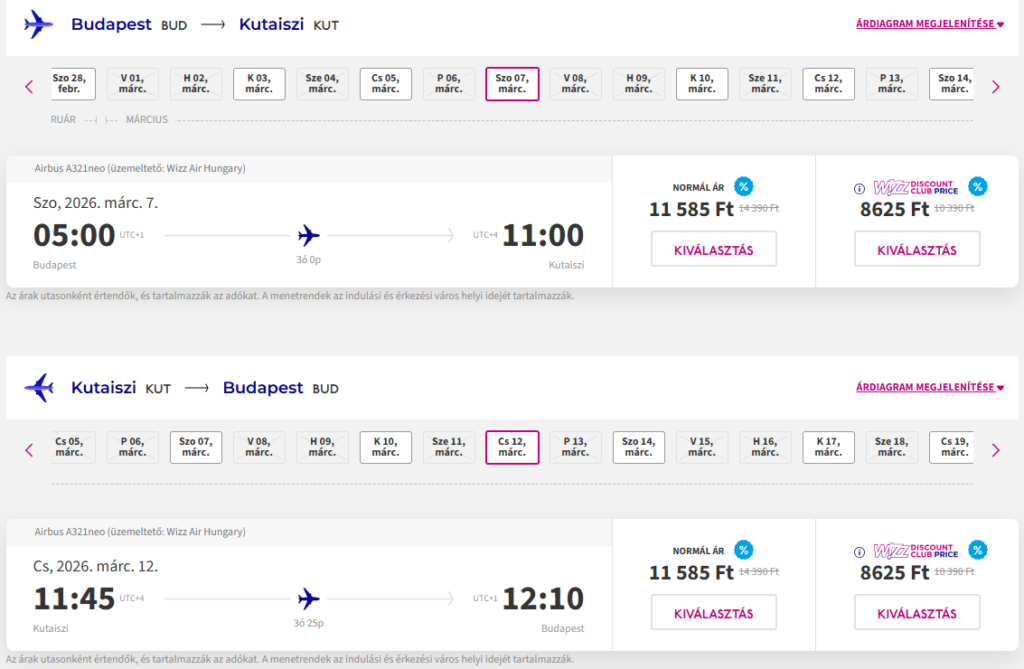 Jó áron foglalhattok repülőjegyet Budapestről Kutaisibe.
