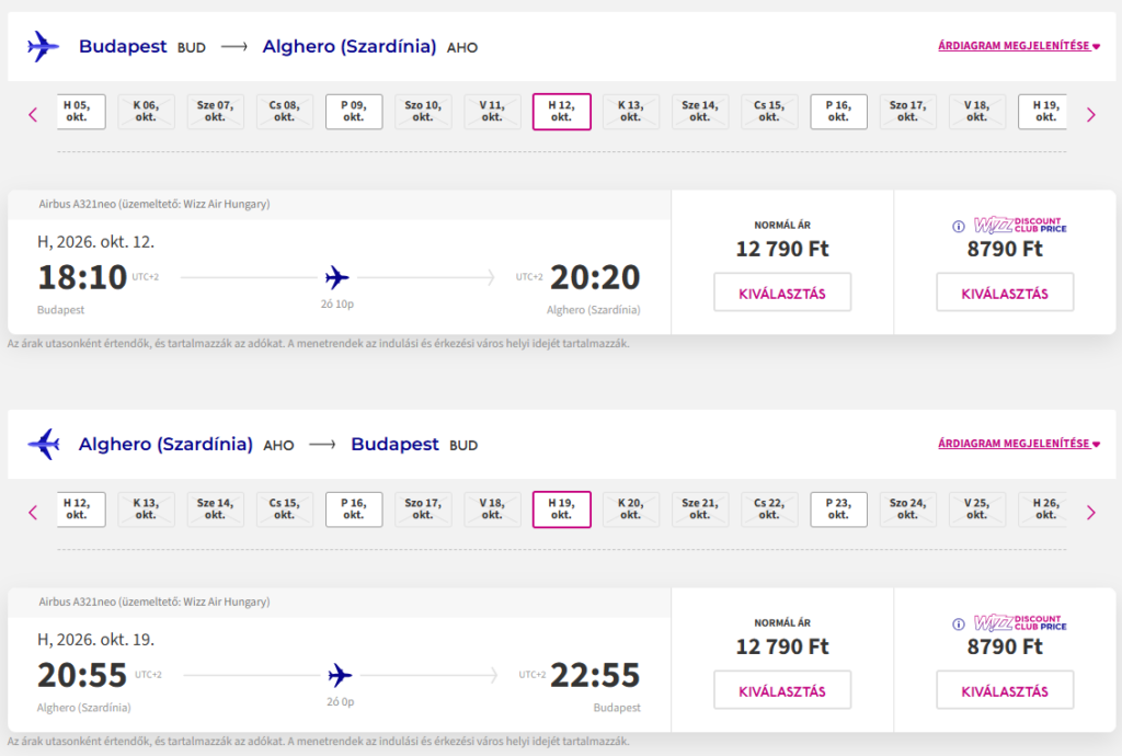 Jó áron foglalhattok repülőjegyet ősszel Budapestről Alegheroba.