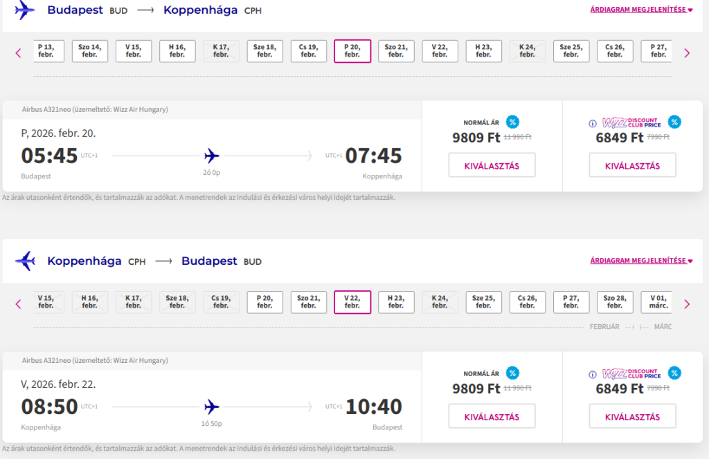 Repülőjegy: oda-vissza 13.698 Ft(Wizz tagságival, anélkül 19.618 Ft) Foglalás ITT