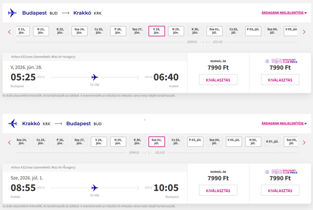 Repülőjegy: Wizz Air, oda-vissza 15.980 Ft Foglalás ITT