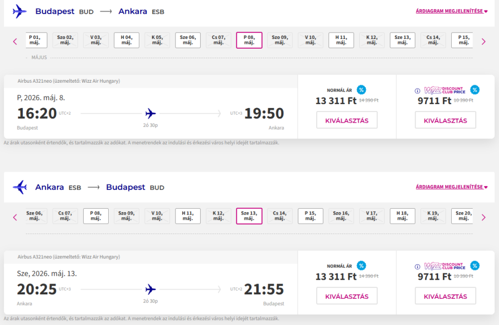 Repülőjegy: Wizz Air, oda-vissza 19.422 Ft(Wizz tagságival, anélkül 26.622 Ft) Foglalás ITT