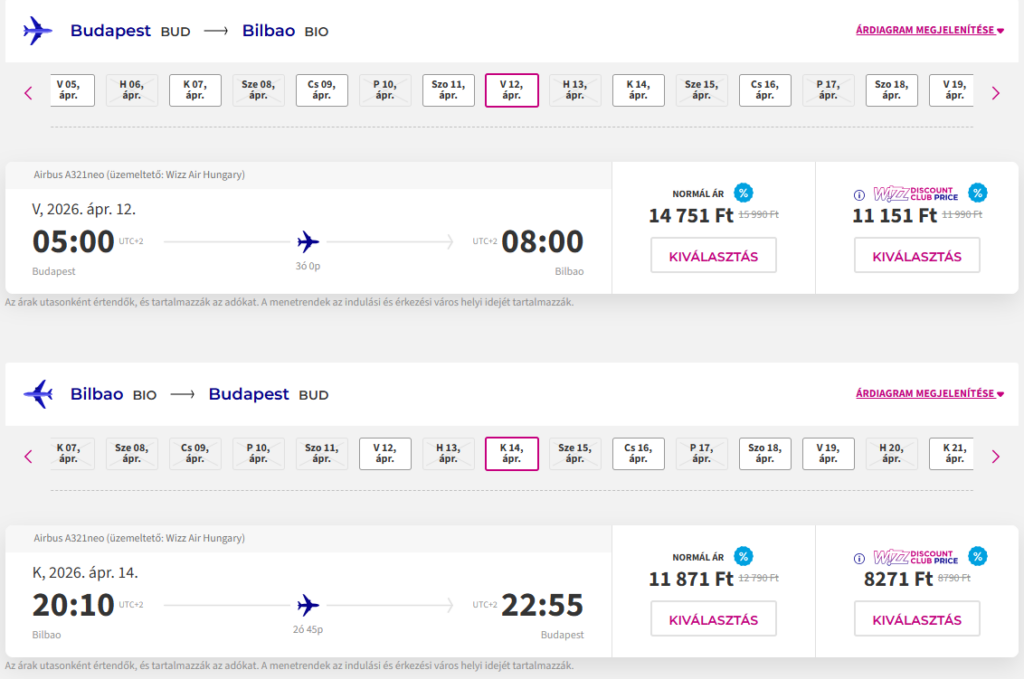 Repülőjegy: Wizz Air, oda-vissza 19.422 Ft(Wizz tagságival, anélkül 26.622 Ft) Foglalás ITT