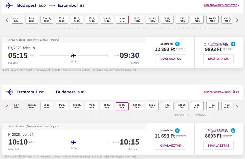 Repülőjegy: Wizz Air, oda-vissza 18.586 Ft(Wizz tagságival, anélkül 24.586 Ft) Foglalás ITT