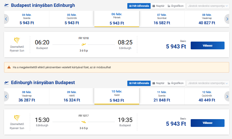 Remek áron foglalhattok repülőjegyet Edinburghba, Skócia fővárosába.