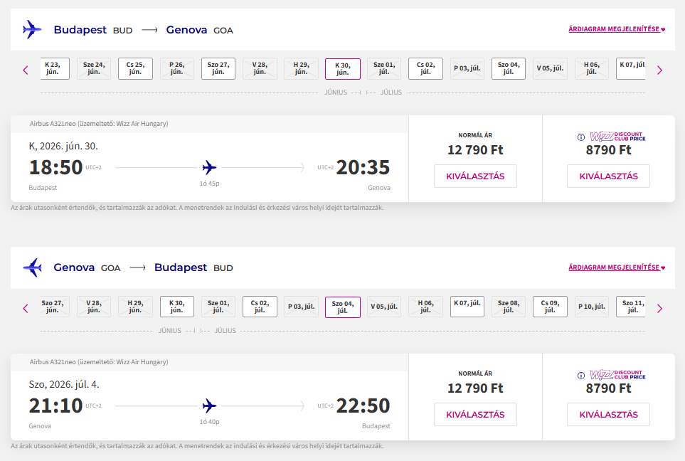 Repülőjegy: Wizz Air, oda-vissza 17.580 Ft(Wizz tagságival, anélkül 25.580 Ft) Foglalás ITT