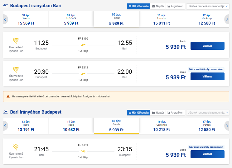 Repülőjegy: Ryanair, oda-vissza 11.878 Ft Foglalás ITT
