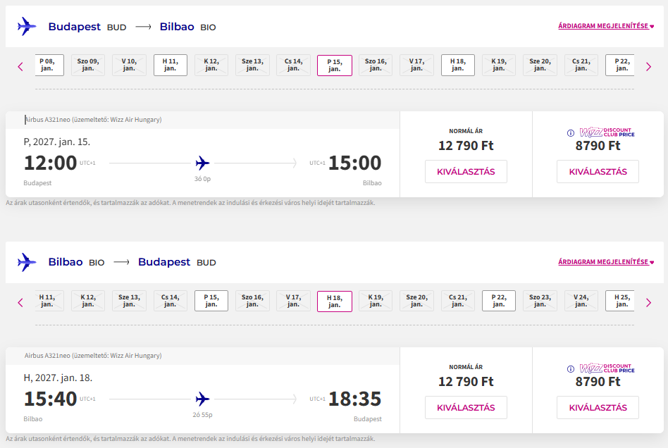 Repülőjegy: Wizz Air, oda-vissza 17.580 Ft(Wizz tagságival, anélkül 25.580 Ft) Foglalás ITT