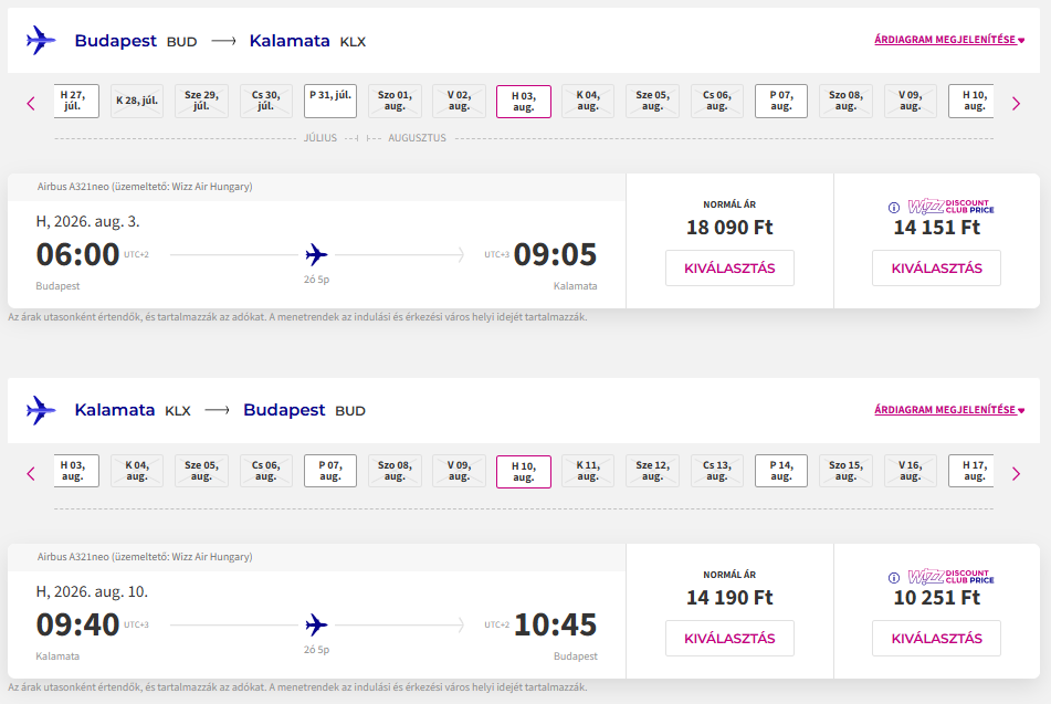 Repülőjegy: Wizz Air, oda-vissza 24.402 Ft (Wizz tagságival, anélkül 32.280 Ft) Foglalás ITT