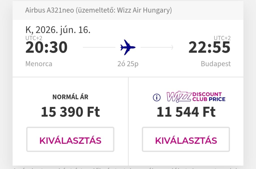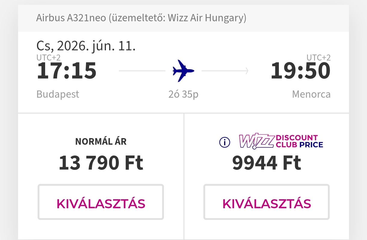 Repülőjegy: Wizz Air, Budapest-Menorca oda-vissza 21.488 Ft(Wizz tagságival, anélkül 29.180 Ft) Foglalás ITT