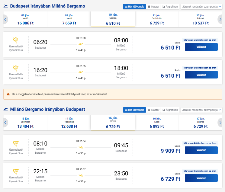 Repülőjegy: Ryanair, oda-vissza 13.229 Ft Foglalás ITT