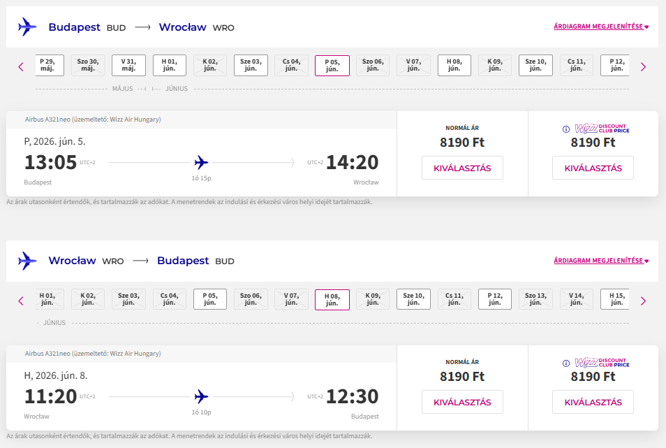 Repülőjegy: Wizz Air, oda-vissza 16.380 Ft Foglalás ITT