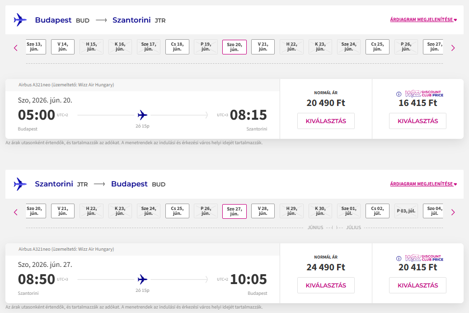 Repülőjegy: Wizz Air, Budapest-Santorini oda-vissza 36.830 Ft(Wizz tagságival, anélkül 44.980 Ft) Foglalás ITT