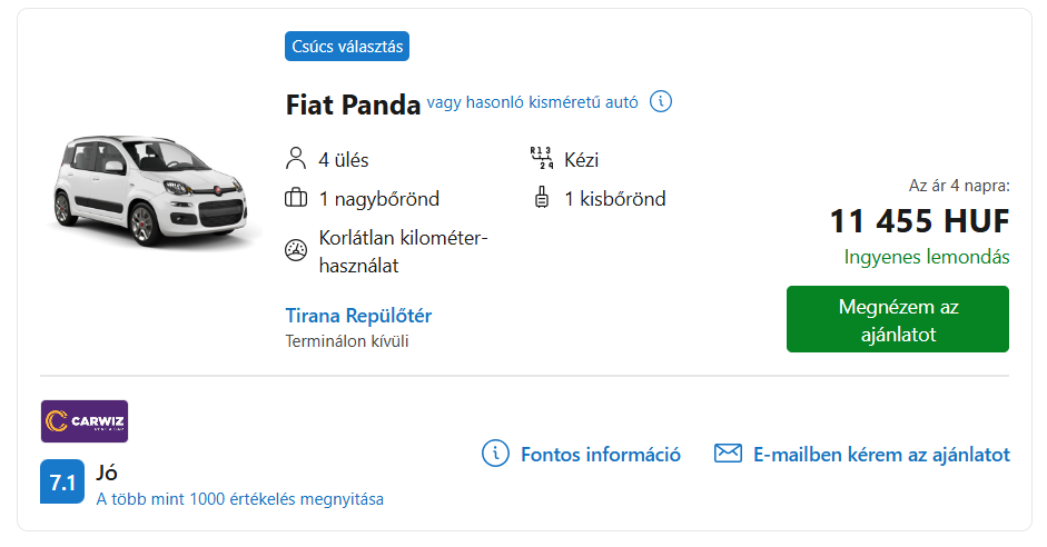 Autóbérlés: 4 napra 11.455 forinttól elérhető. Foglalás ITT