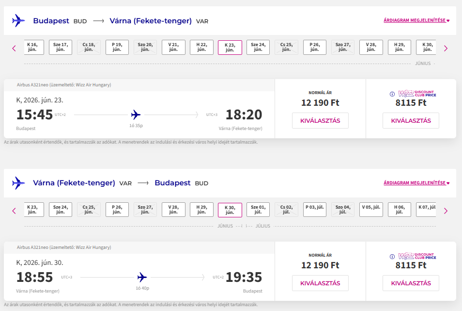 Repülőjegy: Wizz Air, Budapest-Várna oda-vissza 16.230 Ft(Wizz tagságival, anélkül 24.380 Ft) Foglalás ITT