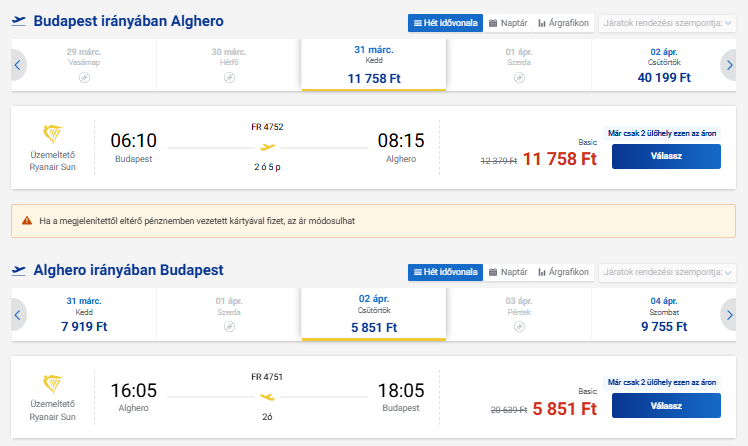 Jó áron foglalhattok repülőjegyet Algheroba.