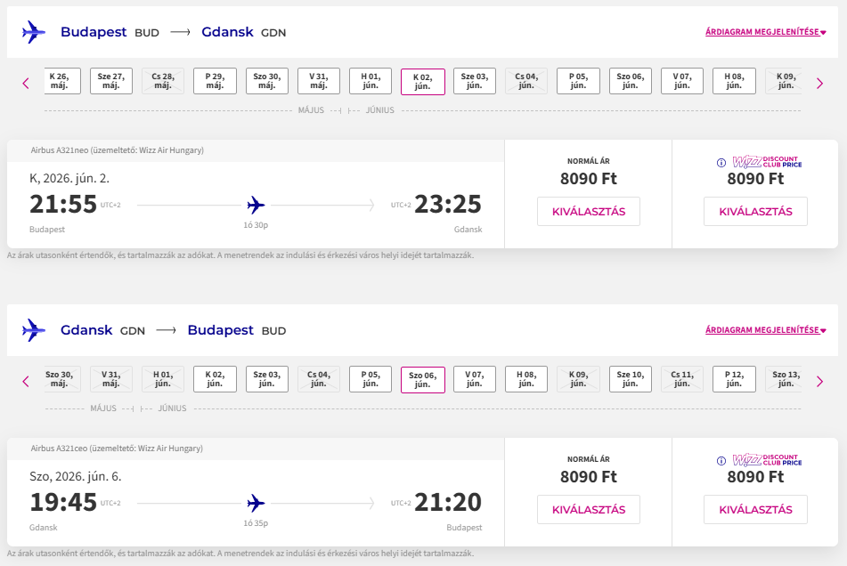 Repülőjegy: Wizz Air, Budapest-Gdansk oda-vissza 16.180 Ft Foglalás ITT